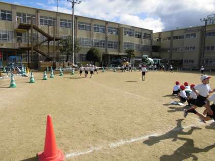 1月22日(水)の持久走記録会に向けて,練習する1年生。3回目ということで,ずいぶんスムーズにペースをつかんで走ることができました。