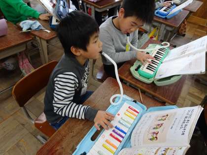 音楽科の授業で伴奏作りをしました。音の組み合わせを楽しみながら演奏していました。