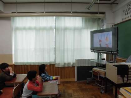 特別の教科道徳では,「おかあさんが つくった ぼうし」というお話を聞いて,家族について考えました。お話を聞くだけでなく,映像でみることで,内容もよくつかむことができたようです。