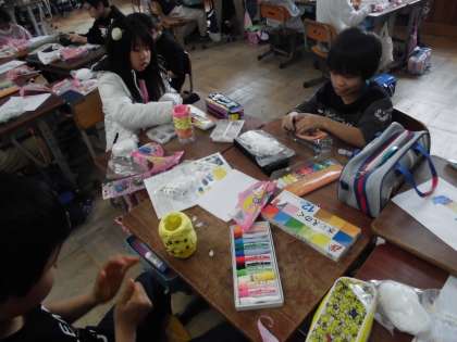 ペットボトルと紙粘土を使って,小物入れを作りました。動物をイメージしたり,きらきらとした飾りをつけたり,思い思いの作品が出来上がりました。