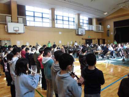 3日(月)にいきいきセンターで,3年生の最後の楽しい交流会を行いました。まずは,3年生からのご挨拶です。「どこかで春が」の斉唱や,「パフ」の2重奏,交流会で頑張ることなど,3年生が頑張る姿をしっかりと伝えられました。