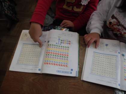 算数科「大きい かず」では,1〜100までの数字が並んだ表を使って,数のあてっこゲームをしました。前後の数字や上下の数字から予測して考えていきました。