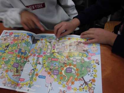 算数科「大きい かず」では,1〜100までの数字が並んだすごろくで遊びました。数がどのように増えていくのか,楽しみながら学ぶことができました。