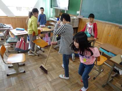 掃除時間の様子です。みんな一生懸命取り組んでいて良いですね。