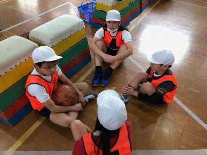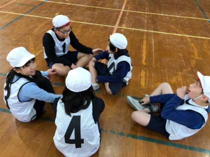 試合と試合の間に,チームで話をする時間をとっています。「どうしたら点をとりやすいのか。」「どうしたら勝てるのか。」と,作戦会議をしている姿が見られます。