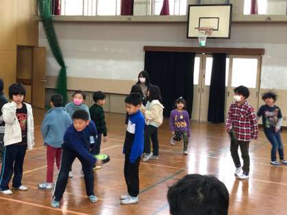 中間休みに,たてわりグループで遊びました。教室や体育館で,それぞれ楽しく遊びました。体育館ではドッジビーをして,楽しむ姿が見られました。