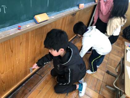 家庭科の「ものを活かして住みやすく」の単元で「教室の汚れ」について学習しました。教室の場所によって汚れ方が異なることが分かったので,次の時間からそれぞれの場所でどのように掃除すると良いのか考えていきます。