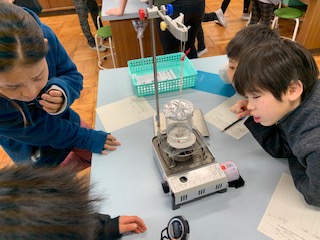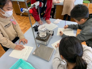 水を熱したときの水の様子と温度の変化を調べました。