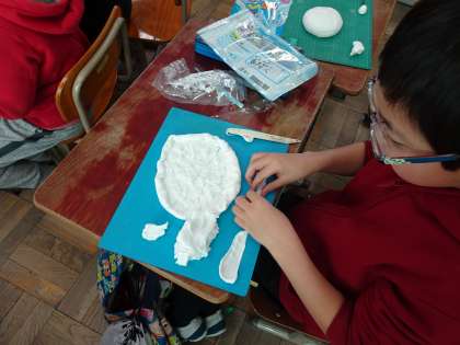 図画工作科の授業で紙粘土を使って,それぞれが考えるご馳走メニューを作りました。どんな作品が出来上がるか楽しみですね!