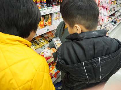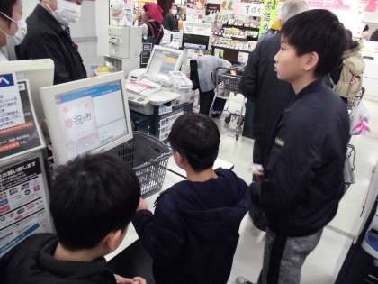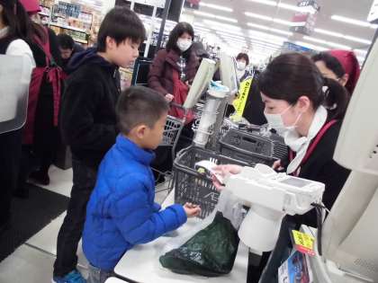 担当の商品を探し,レジで支払いをし,商品を受け取る。