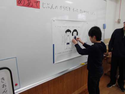 「自分の体をもっと大切にしよう」をめあてに,体の中で特に大事なところを知り,どの
