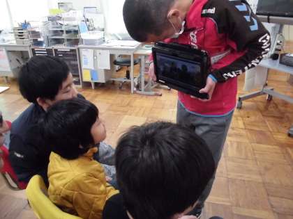 6時間目の生単で,学校のインターネットを使って,上鳥羽小学校のお友だちとテレビ電話で交流しました。