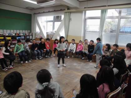 今日のみんな遊びはフルーツバスケット。「ミカンが好きな人?」「ブドウが好きな人?」とみんなの果物の好みを知ることができました。