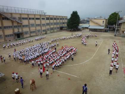 今日は久しぶりに天気に恵まれ、運動場で全校練習することができました。