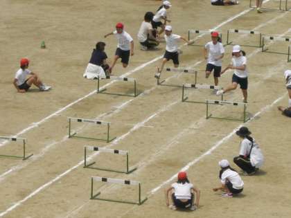 初めてのハードル走では,とても一生けん命に走りきりました。