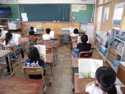 国語科では「ふきのとう」のお話を読みました。読んでいるところを目で追いながら,いい姿勢で範読を聞いています。