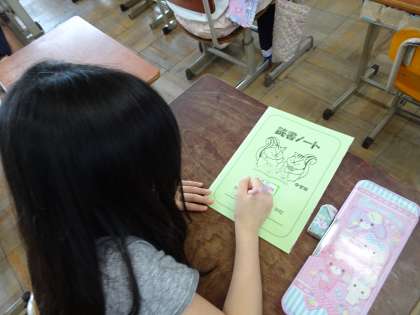 読書ノートをくばりました。「100冊目指して頑張るぞ!」と子どもたちは張りきっていました。読書で身についた読む力や考える力は学習にも生かされます。進んで本に親しみましょう。
