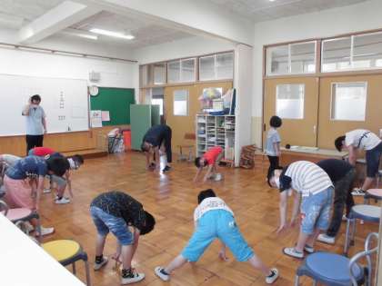 密にならないように,体をほぐし,簡単なサーキット活動をしました。