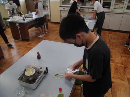 それぞれの葉を煮てやわらかくし,ヨウ素液につけました。