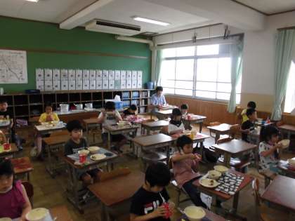 給食がスタートしました。おいしく食べて,昼からの学習も頑張ることができています。