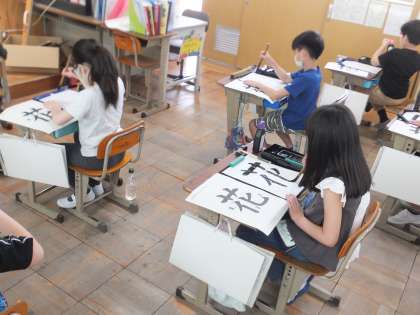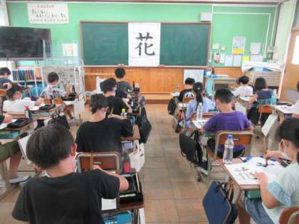 一筆ずつとめ・はらい・まがり・はねを心掛けながら,落ち着いた環境で学習することができました。毛筆で気づいたことを,普段の文字にも生かしていけるといいですね。