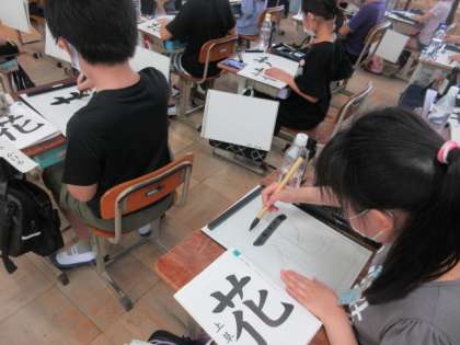 毛筆の学習で「花」を書きました。