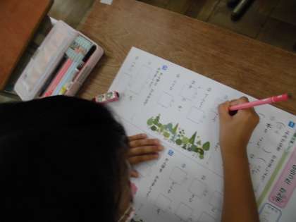 1年生で習った漢字や言葉の力を確かめるテストに挑戦しました。丁寧な字で書こうとがんばる姿が見られました。