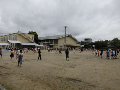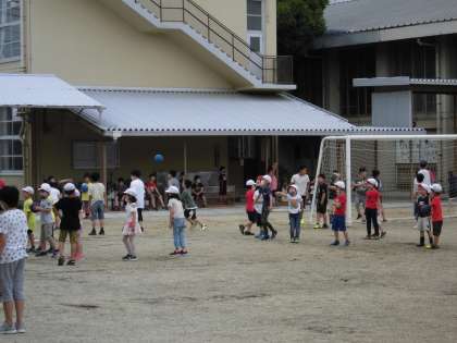 6月12日(金)より中間休みでの外遊びがスタートしました。赤白帽子をかぶって元気よく遊ぶ子どもたち。にこやかな顔が印象的でした。