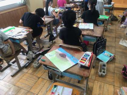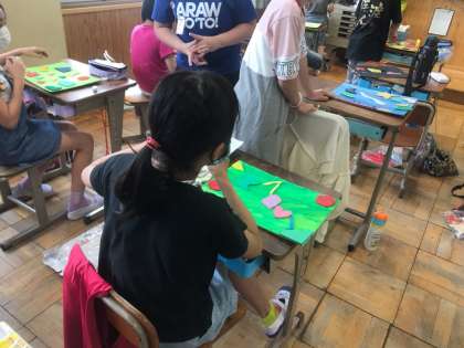 図画工作科では板を組み合わせてビー玉の通り道を作ります。