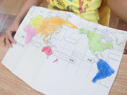 地球儀を使って,「〇〇大陸を探せ!」が一番盛り上がりました。
