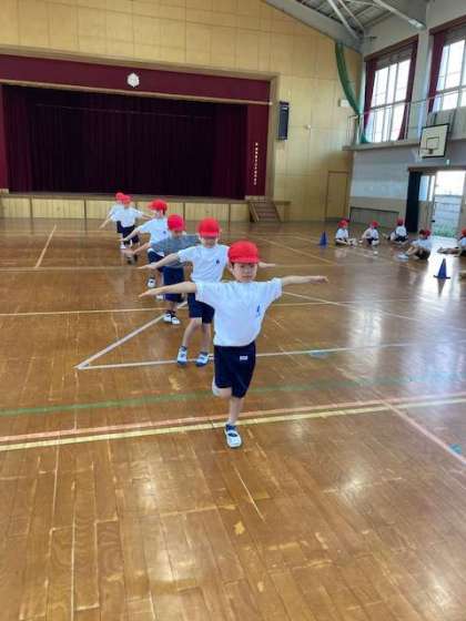 難しい動きでも,あきらめず一生懸命に取り組んでいます。