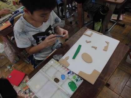 絵具を使って作りたい作品に近づけようと一生懸命頑張っています!