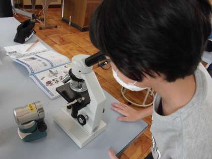 理科の学習で顕微鏡を使って,メダカの卵の観察をしました。