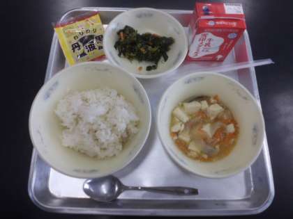 ほうれん草のごま煮は,ほうれん草とにんじんを,かつお節からとっただしと醤油で煮て,最後に炒ったごまと和えました。「お野菜はあまり好きではないけど,これは食べれる!」と話す子もいて,野菜が苦手な子でも食べやすい献立だったようです。
