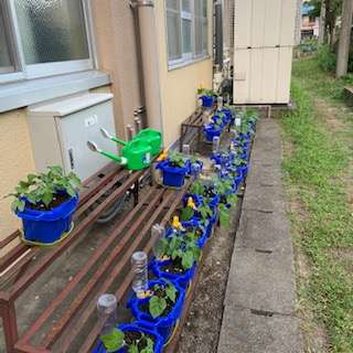 学校再開後に種を植えたあさがおが大きく成長しました。これも子どもたちが「元気に育ってほしい!」と気持ちを込めてお世話をしたお陰です。
