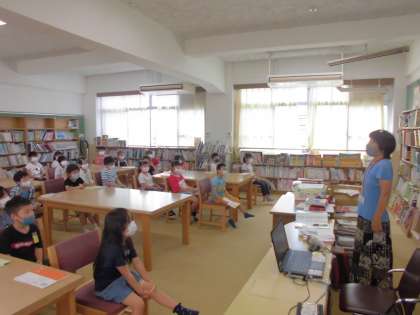 国語の学習で学校図書館に行きました。本を探しやすくしている図書館の分類の秘密に気づくことができました。