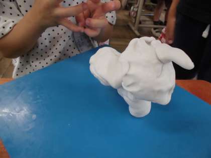 図画工作科「にぎにぎ ねん土」では,粘土を握ってできた形から,どんなものが作れるかを考えました。組み合わせたり並べたりすることで,自分の世界を表現することができました。