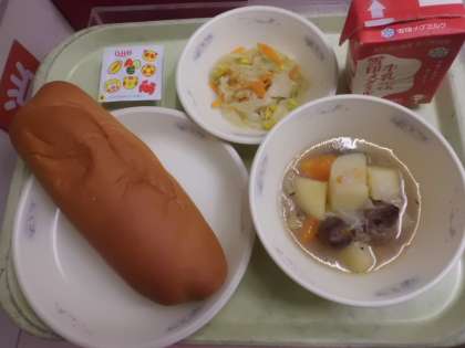 アイルランド風ビーフシチューは,新メニューでした。日本でいう肉じゃがのようなもので,アイルランドでは家庭料理として親しまれているようです。アイルランドでは羊肉を主として使っていますが,給食では牛肉を使っています。子どもたちに感想を聞いてみると,「また食べたいから給食で出してほしい!」や「初めて食べたけどおいしくておかわりしたいと思った」と話す子どもが多かったです。