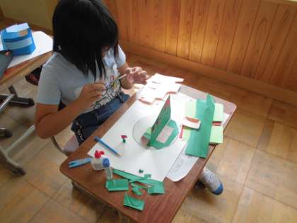 くるくる回る仕組みを使った工作に取り組んでいます。