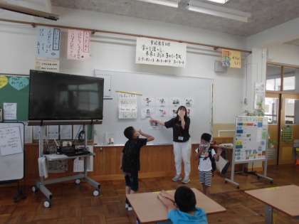 1学期の外国語活動では,「あいさつ」の学習をしています。