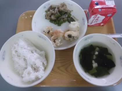 今日は月に一度の”和献立(なごみこんだて)”の日でした。”和献立”は京都市の給食を通じて和食の良さを伝えていく取組で,旬の食材を取り入れ,だしのうまみを感じることができるようなメニューとなっています。普段なかなか食べることのない食材が使われていて食べにくいと感じる子もいるかもしれませんが,給食を通じて和食に関心を持つ子どもが増えていけばと思います。