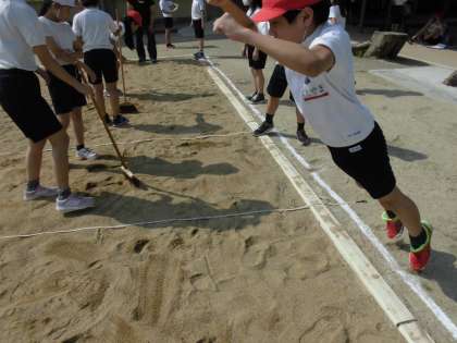 立ち幅跳びは手を大きく振り,膝を十分に曲げることで記録を伸ばすことができました!