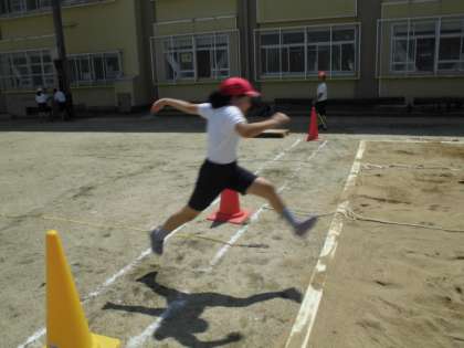 体育の学習で走り幅跳びをしています。