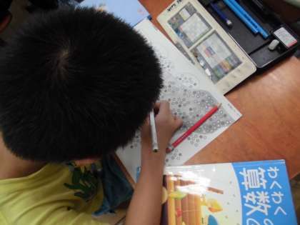 算数科「100をこえる数」では,教科書に載っているたくさんの星の数を数えました。10のかたまりをつくって数えることで,早く正確に数えることができました。
