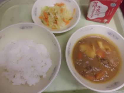 今日は子どもたちに大人気のカレーでした。おかわりをしたり,減らさずに食べきったりする子どもがほとんどで,残菜がゼロのクラスも多かったようです。この調子で来週も残菜ゼロを目指してほしいと思います。