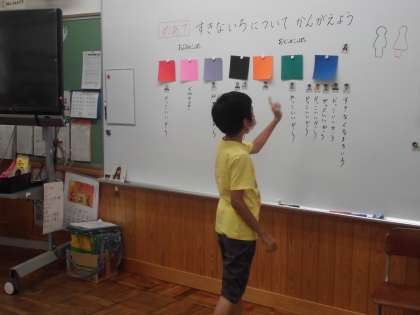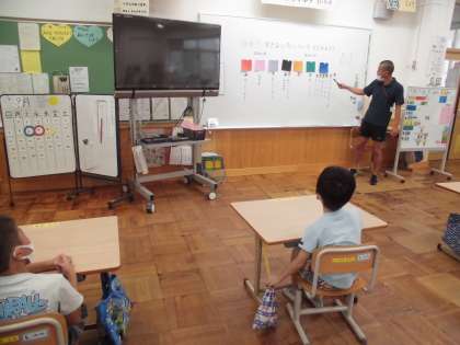 問いかけ,話し合う中で,男の子っぽい色,女の子っぽい色などの,色に対するイメージを発表してくれた子どもたち。