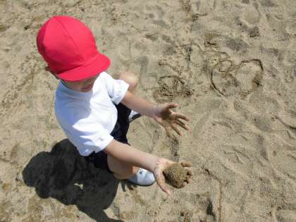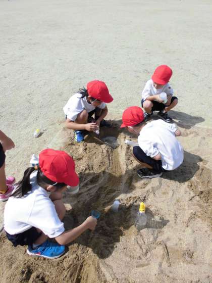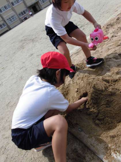 砂場では,泥団子を作ったり,トンネルに水を流したり,
