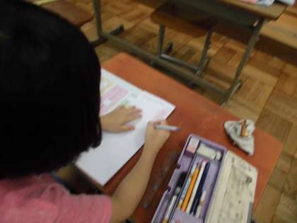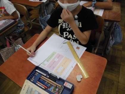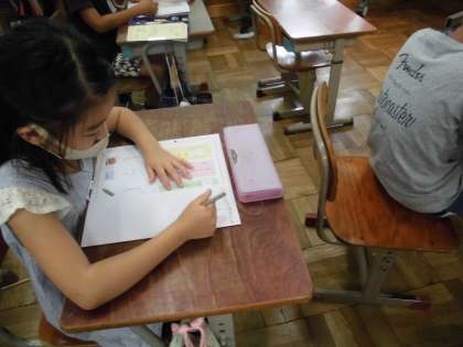 国語科では聞き取りテストに挑戦しました。CDの音声を聞いて,大事なことをメモしていく子どもたち。その後,メモをいかして問題に答えていきました。