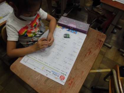 1学期に習った漢字のおさらいテストに挑戦。自主勉強で取り組んだ成果が見られました。