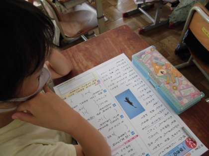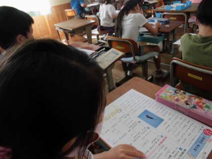 国語科では,新規の読み物を使ったテストに挑戦しました。初めての文章なので,何度もじっくり読んで問題に答えている姿が見られました。